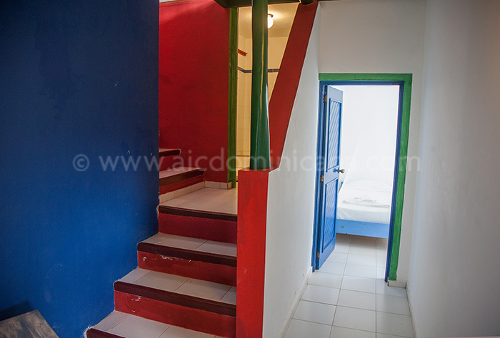 A l’étage inférieur, 1 chambre avec 2 lits simples et sa salle de bain qui fait aussi office de toilette visiteur. Deux chambres avec lits doubles partagent une salle de bain. Toutes les chambres ont une armoire et balcon avec vue sur la végétation tropicale.